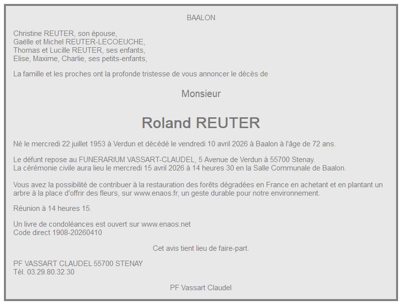 CREMATORIUM DE RETHEL le jeudi 16 avril à 14 heures